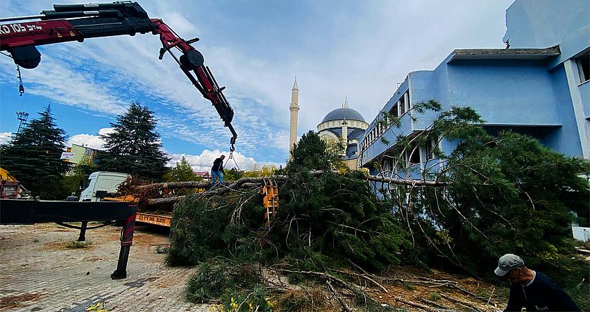 | Bingöl Belediyesi, hükümet konağı alanında bulunan ve taşınması mümkün olan ağaçları köklerinden sökerek başka alanlara naklediyor. | ||