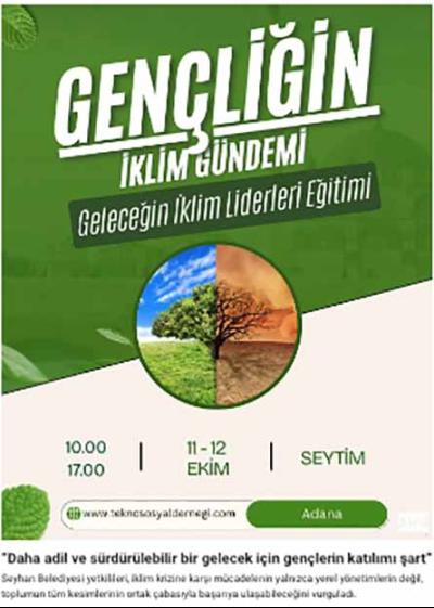 Seyhan Belediyesi’nin öncülüğünde düzenlenecek eğitimde, iklim değişikliğiyle mücadele, çevre politikaları, sürdürülebilir kalkınma ve iklim adaleti gibi konular ele alınacak. Programın amacı; gençleri iklim bilinci yüksek bireyler olarak yetiştirmek ve geleceğin iklim politikalarında söz sahibi olmalarını sağlamak.
