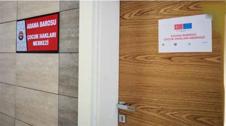 Proje kapsamında Adana Barosu tarafından Adana Adliyesi içerisinde Çocuk